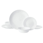 - Classic Design: Features a classic white dinnerware design that complements various settings for both everyday meals and special occasions.