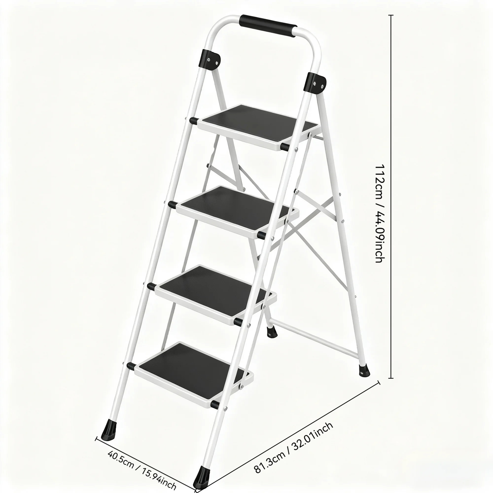 • 【ANTI-SLIP DESIGN】You can easily find our pedals thicker and wider, and the anti-slip line is deeper. This can increase your sense of security. Thickened rubber feet fully touch the ground to keep the ladder stable when in use, and can effectively prevent scratches on the floor. The top handrail can give you extra support when climbing.