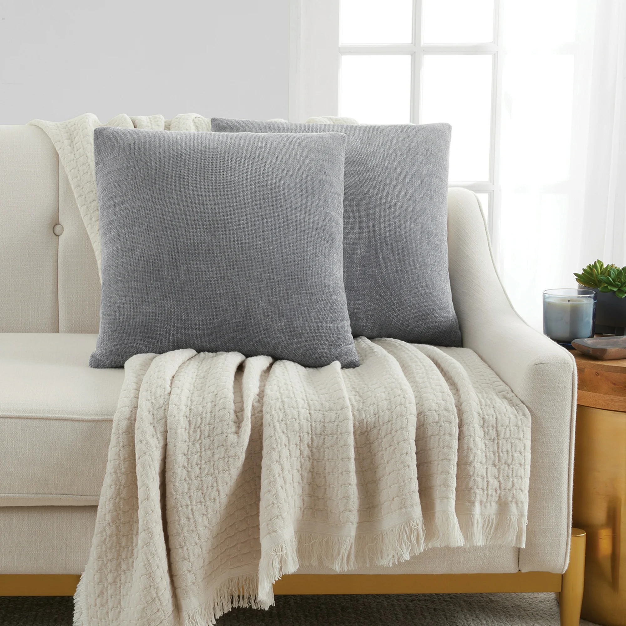Mainstays Solid Chenille Decorative Throw Pillow Set, Grey, 18″ x 18″, 2 Pieces