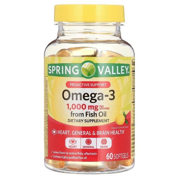 Spring Valley Proactive Support Omega-3 Fish Oil Dietary Supplement Softgels for Heart/General/Brain Health, 1000 mg, 60 Count